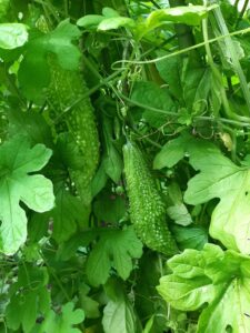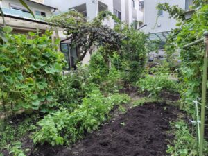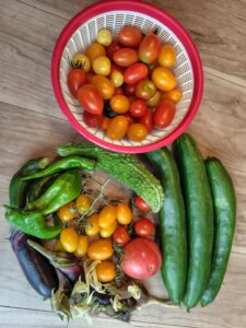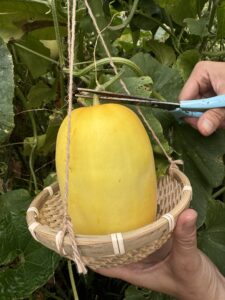 この時期は夏野菜の観察・灌水・収穫・誘引、野生植物の管理、庭木剪定等々の作業を行なっています🥝🍉🍆🍅🥒