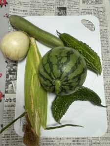 収穫、夏野菜の芽かき、誘引、追肥作業等々🥒🌶🍉🌽