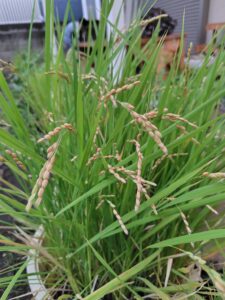 抜いた草や剪定した枝で堆肥作りをしている場所がいっぱいになったため、隣の場所にもう1箇所広げました👏劉さん筋肉痛は大丈夫ですか?稲🌾も実が熟し始めました🐰🐰🐰四季の庭バケツ稲でオニギリ(おにぎり)を食べるのが夢ですが、今年も夢で終わりそう😭😭😭ミニトマト、ゴウヤ、生姜、とうもろこしの他に稲の花も見られました。